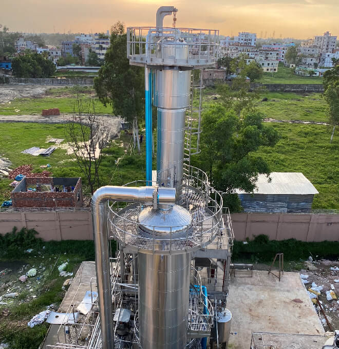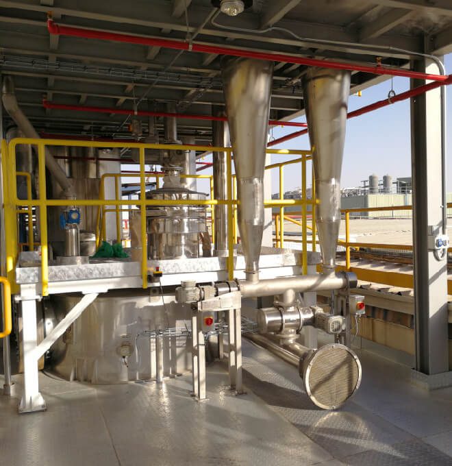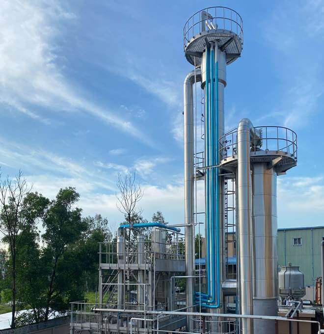 Falling film evaporator is an advanced, highly efficient solution designed specifically for the starch industry. This vertical shell and tube heat exchanger optimises the concentration of liquids by vaporising a thin film that evenly flows along the inner walls of heated tubes. Pre-heated liquid is pumped to the top of the evaporator, where it forms a consistent film…